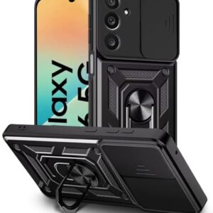 ShieldTech Back Cover Compatible to Samsung Galaxy A25 5G with Sliding Camera Shield & Stereoscopic Holder 360° Protection Mobile Phone Case for Samsung Galaxy A25 5G (PC, Black)
