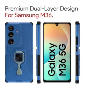 Pikkme Back Cover for Samsung Galaxy M36 5G Tough Armor 360° Camera Protection Raised Edges & Kickstand Bumper Case (Blue)