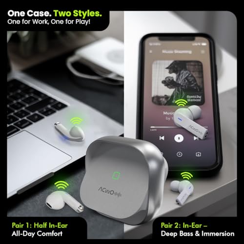 ACwO DwOTS Fire India’s First in-Ear + Half-in-in Ear Earbuds in one case, 3+3 EQ Modes, Wireless Charging Enabled, AI-ENC with Quad Mic (Cosmic Silver)