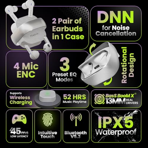 10 reviews for ACwO DwOTS Fire India’s First in-Ear + Half-in-in Ear Earbuds in one case, 3+3 EQ Modes, Wireless Charging Enabled, AI-ENC with Quad Mic (Cosmic Silver)