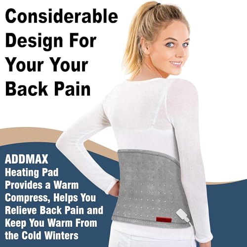 ADDMAX Electric Heating Belt for Pain Relief | Orthopaedic Electric Heating Pad Lower Back Pain & Menstrual Period Cramps | Large Size | Heat Therapy Waist Wrap for Pain Relief of Back,Neck,Shoulder,Lumbar |Light Grey|