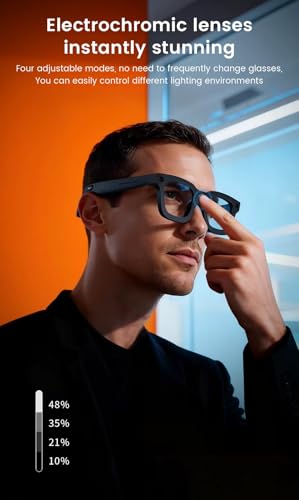- INSTANT ADAPTIVE TINTING (ELECTROCHROMIC): Stop switching between glasses. Featuring advanced electronic tint control, these lenses transition from clear to dark in just 0.2 seconds at the touch of a button. Unlike traditional photochromic lenses that require UV rays, our electrochromic technology works indoors, in cars, and in direct sunlight for perfect vision anywhere.