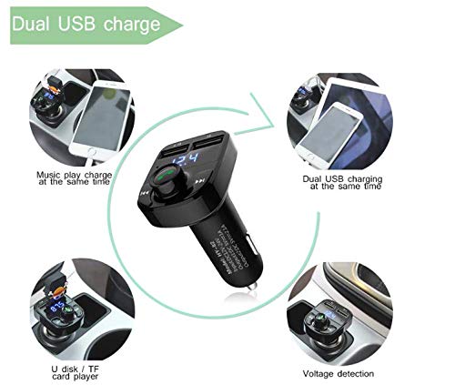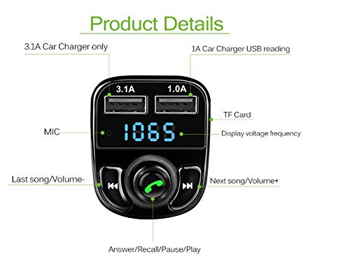 Aeoss Bluetooth Car Kit FM Transmitter MP3 Player with LED Dual USB 3.1A Voltage Display Micro SD TF Music Playing Charger