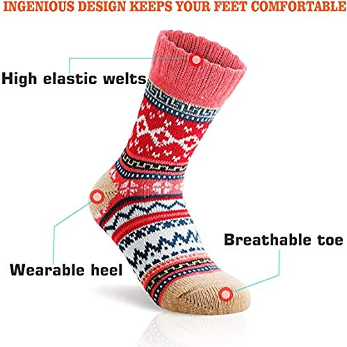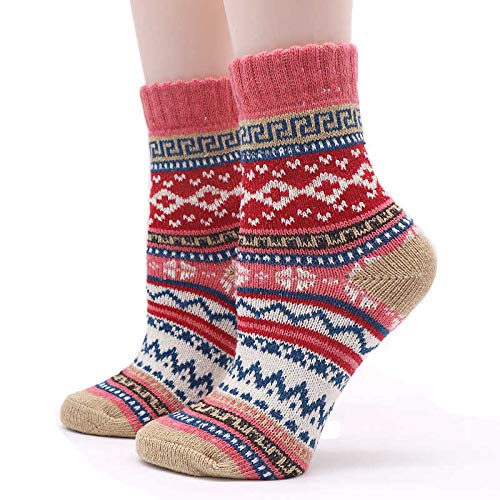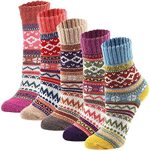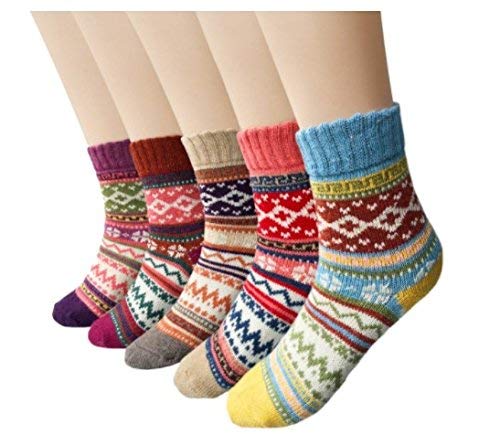 | Feature | PERFECT PACKAGE: 5 Pairs Multicolor Socks With Good Package.The Womens Thick Cold Knit Wool Crew Warm Socks Are Perfect Present For Your Girlfriend, Wife, As Birthdays, Christmas Gift.Or Grandma Who Is Afraid Of Cold To Show Your Love. |