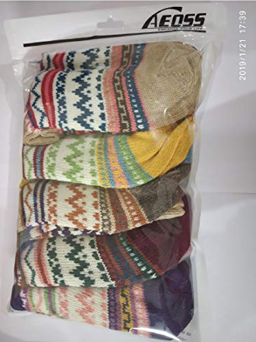 Aeoss Women’s 5 Pairs Vintage Style Winter Knitting Warm Wool Crew Socks, A-Wave, Free Size Multi Color