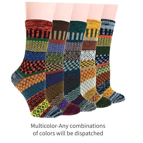 Aeoss Womens Vintage Style Knitting Wool Warm Winter Fall Crew Socks Free size 2 Pairs (Multicolor)
