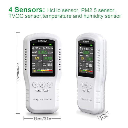 10 reviews for Air Quality Monitor, 8 in 1 Indoor Air Quality Meters, Formaldehyde Detector, Pollution Meter Sensor Detecting HCHO, PM2.5, TVOC, CO, CO2, AQI, Temperature and Humidity Tester