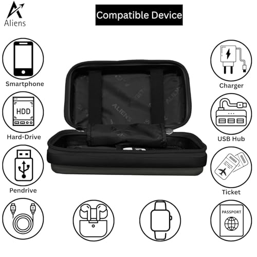 Aliens Travel Gadget Organiser Case Bag, Hardshell ABS Material, Shockproof, Water-Resistant Travel Storage Pouch for HDD/SSD, Gadget Organiser, Cable, Charger, Smartphone, airpods, Power Bank-Grey