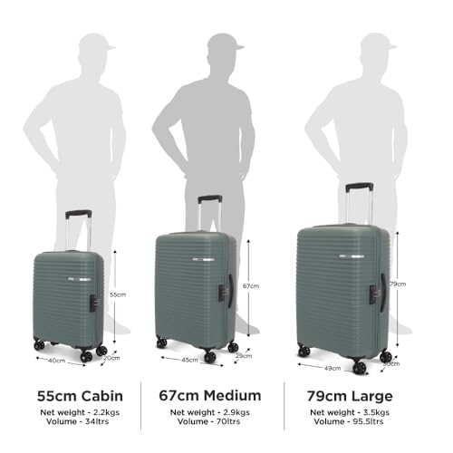 Size | Checkin, 67 cm, Medium, Set of 3 (55 cm, 67 cm, 79 cm), Checkin, 79 cm, Large, Cabin, 55 cm, Small, Cabin, 55 cm, FTL |