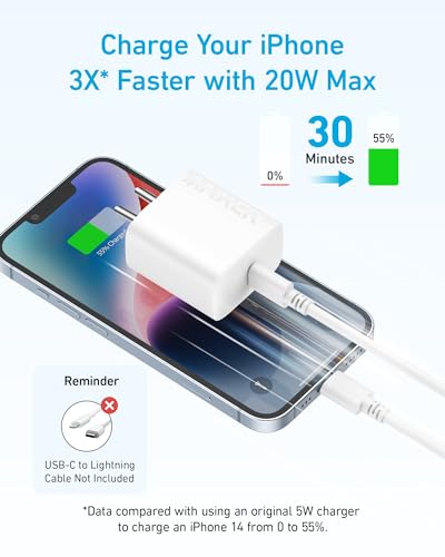 ANKER 20W Type C Ultra-Fast Charger, 3X Times Faster Charging, Power Delivery Pd with Patented PIQ 3.0 Technology for iPhone 15/14 /13, Galaxy, Pixel, Ipad and More, White