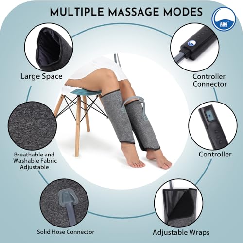 - 👌{𝐁𝐄𝐍𝐄𝐅𝐈𝐓𝐒} ARG Healthcare Air Pressure Full Massager relieves muscle pain and tension, improves blood circulation, reduces swelling and edema, helps with varicose veins, and promotes relaxation. Air compression leg massager with heat gives a deep massage experience after a tiring day. Equipped with Velcro openings, it can be easily tied around your calves, thighs, and even feet.
