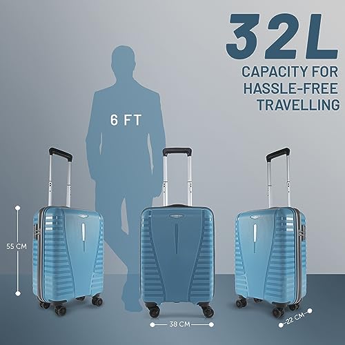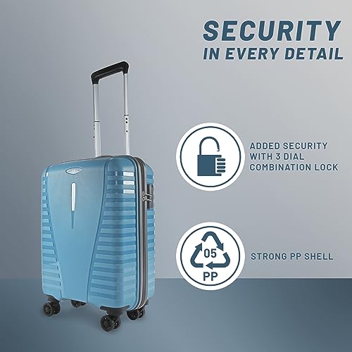 Aristocrat Cabin Airpro 55 Cm(Small) Polypropylene 360 Degree 8 Wheels Trolley Bag for Travel Hard Case Luggage, Lightweight with Combination Lock & Robust Trolley with 7 Yrs Warranty (Teal Blue)