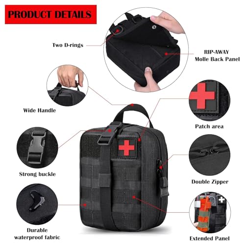 ARURA (LABEL) Medical Kit First Aid Pack Survival Emergency Medicine Waist Bag Molle Kit Rescue Equipment Kit (No (Black)