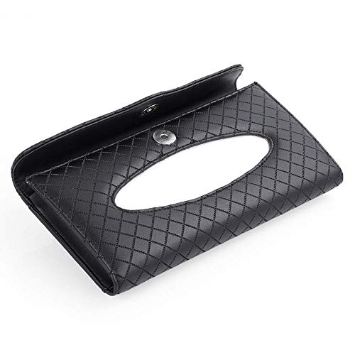 Automaze PU Leather Car Sun Visor Back Seat Tissue Napkin Box Holder, Interior Car Accessories (Black, Sun Visor Type)