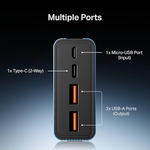 - Triple Output & Dual Input Configuration: With 2 USB-A outputs, 1 Micro-USB input and a 2-way Type-C (output/input), the PB435 Turbo supports simultaneous charging of up to three devices. Whether you’re using a smartphone, tablet, or wearable, you can power them all—without compromise.