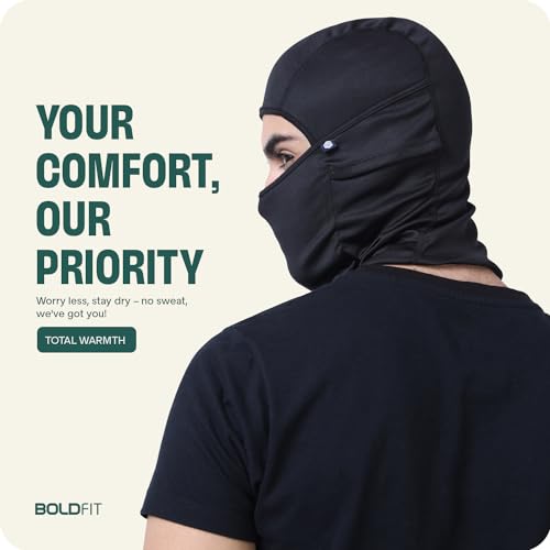 Boldfit face mask for bikers full face mask for bikers helmet head cover balaclava for men bike riding & biker head cover for helmet for men Balaclava for adult Black Masks for Bike Riding – Black