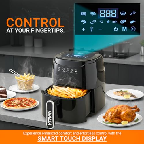 - 8 in 1 MULTIFUNCTIONS: Choosing from 8 convenient cooking functions with just a Touch Display, also to quick adjustment on cooking time. The INALSA air fryer’s one-touch screen features 8 present functions with precise temperature & timer settings