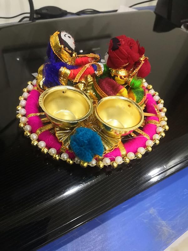 - Package Contents : One Radha Krishna Chandan Roli Kumkum Chawal Holder Home Decorative Items Chopda for Pooja and Gift Purpose