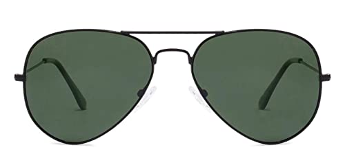 VINCENT CHASE EYEWEAR By Lenskart | Full Rim Aviator | Polarized and 100% UV Protected Sunglasses | Men & Women | Medium | VC 5158/P (Color-Black/Green Lens)-Pack of 1