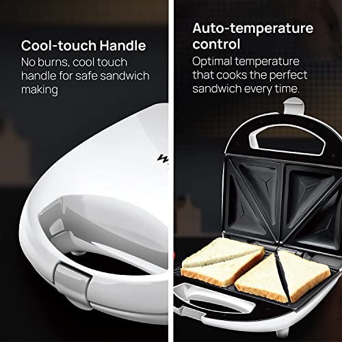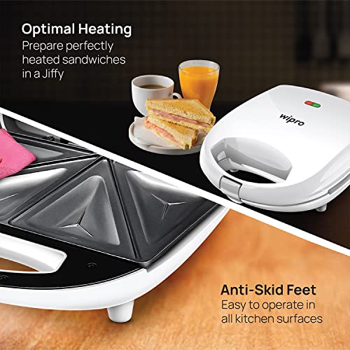 Wipro Vesta BS101 700 Watt Premium Sandwich Maker cum Toaster, White, Automatic Temperature Control, Smart LED Indicator, Non-stick-BPA& PFOA White,1 Year Warranty, Regular Bread Size for 2 Slices