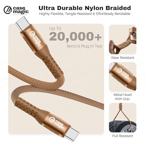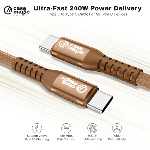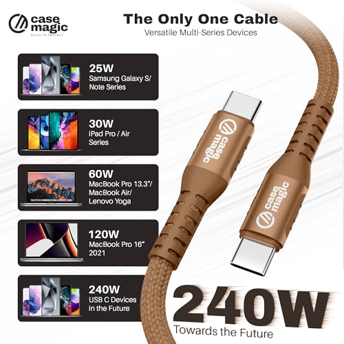 case-magic 240W Type C to Type C Fast Charging Cable 1.2M | Nylon Braided USB-C PD Cable with Chip | 480Mbps Data Sync | Compatible with MacBook, iPhone 15, Samsung, iPad, Laptop, Tablet (BROWN)