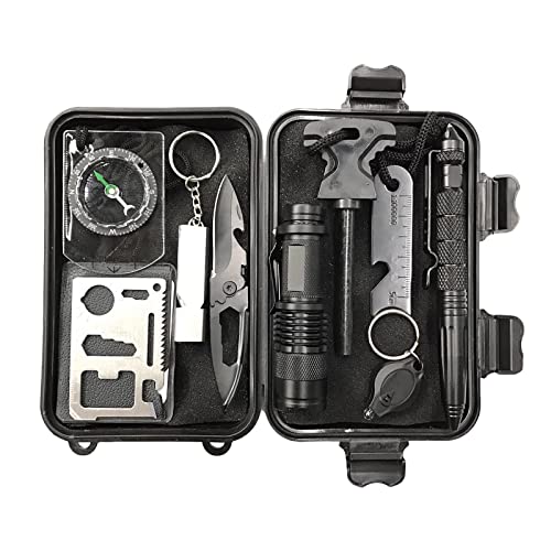 - Multi-Function 10 In 1 Briefcase:Versatile Survival Gear Device, Including Flashlight, Compass, Loud Whistle, Key Light, Tool Card, Flintstones, Emergency Tungsten Steel Pen And So On.