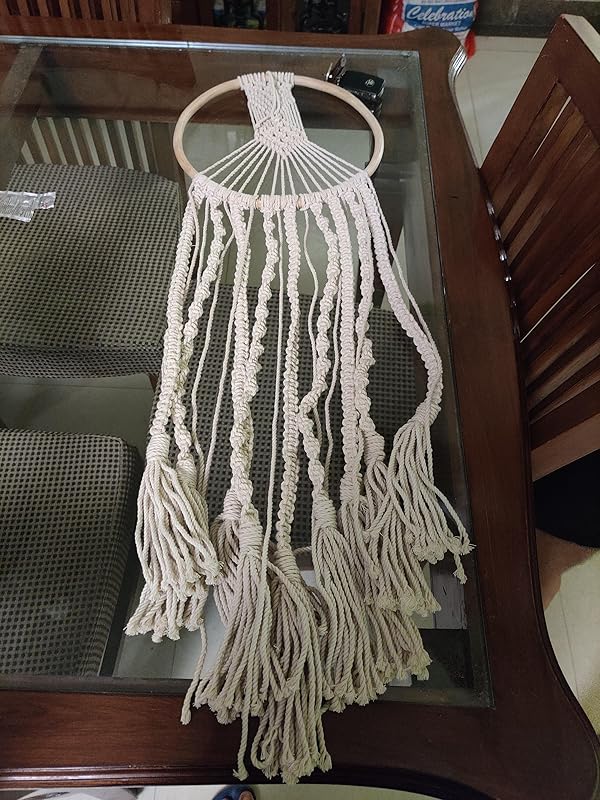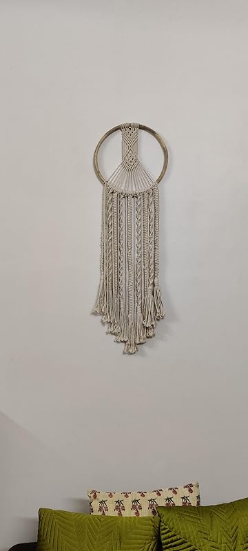 DXYZ Macrame Dream Catcher | Cotton Rope Bohemian Vintage Style Wall Hanging Tapestry | Modern Room Home Decor | Geometric Wall Art | Gifting (Ivory)