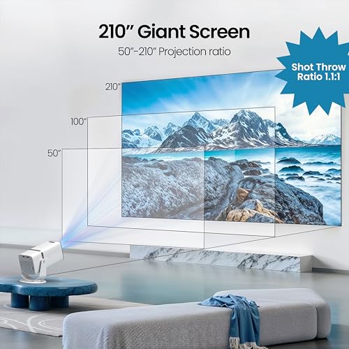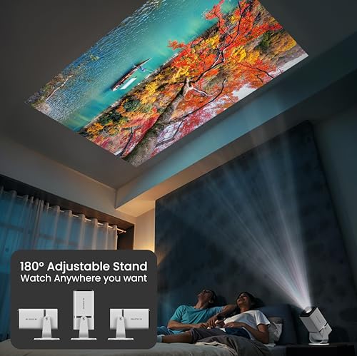 - 【180° Rotation for Optimal Viewing Angles】: This compact projector features a 180° rotatable design, allowing you to adjust the projection angle for the best viewing experience. | Lanthanide glass with short focal length for bigger picture from shorter distance making them ideal for smaller/compact rooms (Short throw 1.1:1)