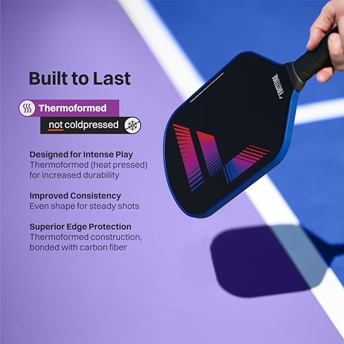 - THERMOFORMED UNIBODY CONSTRUCTION: The pickleball paddle is moulded into one piece with high-temperature and high-pressure treatment, eliminating looseness and gaps and enhancing the rackets stability and durability.