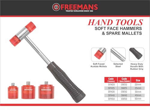 10 reviews for FREEMANS SFH20 Soft Face Acetate Mallet Hammer-20mm With Non-Slip Rubber Grip Handle For Bending and Shaping Metals | Tiles Fitting | Metal Forming | Industrial & Home Professional Use