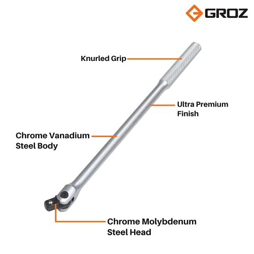 GROZ Flex Handle with Spring Loaded Ball Bearing Joint| Ideal for Heavy Duty Applications for Tightening or Releasing a Fastener| Chrome Vanadium Steel Body| Drive Size: 3/8â€| Length: 9â€| DFH/3-8/9/MT