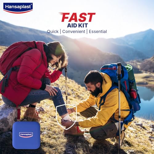Hansaplast Fast Aid Kit for Wounds & Bruises | First Aid Kit | 9 Items – 38 Pieces | Emergency Medical Kit for Home, Office, Travel, Car, Sports, Outdoor, Multi-Use Pack for Cuts, Wounds & Injuries | Lightweight & Compact