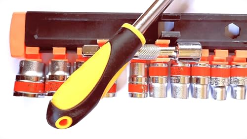 HELLARO 12pcs Multifunction Wrench including 1/2 inch rachet.ratchet teeth heavy duty reversible quick release ratchet handle – Soft grip handle for the comfort of work – Essential sockets in every garage, workshop or household. A variety of specifications to meet the needs of the work, sockets and wrenches are used high-quality chrome vanadium steel forging the overall heat treatment high hardness, torque, good toughness, long service life