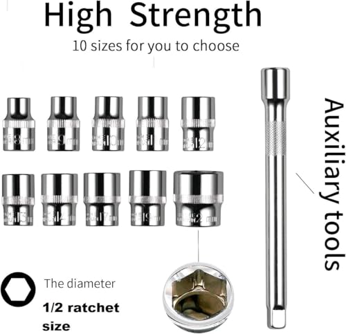Features: With this Multifunction Socket Wrench you?ll always have the right tool for the job The 12pcs Multifunction Wrench !!! Works with Virtually ANY Size & Shape Nuts & Bolts. (1) High-Quality Mirror Chrome Vanadium Steel. (2) 72 teeth heavy duty reversible quick release ratchet handle – Soft grip handle for the comfort of work – Essential sockets in every garage, workshop or household. —12 pieces (1/2th Inch) 12.5 mm Sockets Set Includes – (1) 1 Pc (1/2th Inch) 12.5 mm Series Quick Release Ratchet Wrench. (2) 1 Pc (1/2th Inch) 12.5 mm Series Standard Extension Bar: 5″ (Inch). (3) 10 Pcs (1/2th Inch) 12.5 mm Series Hexagon Sockets Sets: 8,10,12,13,14,15,17,19,21,24 mm. —ADDITIONAL FEATURES & WORKING: (1) Built-in precision 72 gears:: Features: With this Multifunction Socket Wrench you?ll always have the right tool for the job The 12pcs Multifunction Wrench !!! Works with Virtually ANY Size & Shape Nuts & Bolts. (1) Forged Fine CRV, High-Quality Steel fine chrome plating quenching, precision72 tooth oil furnace quenching and anti-rust lubrication ability, turn only once 5 degrees. (2) Chrome vanadium steel quenching and forging:: A variety of specifications to meet the needs of the work, sockets and wrenches are used high-quality chrome vanadium steel forging the overall heat treatment high hardness, torque, good toughness, long service life. (3) Chrome steel mirror polished:: High quality chrome vanadium steel forging, the overall smooth formation, the whole body thick high hardness, the use of mirror polishing is not easy to scratch wear long life. (4) Ergonomic handle:: Wrench the entire chrome vanadium steel forging mirror polished. Thermoplastic rubber handle, ergonomic design, handle non-slip. (5) Self-locking drive head:: Self-locking drive head to prevent the sleeve accidentally fall off and can be unlocked button to achieve fast switching sleeve function, the use of more relaxed, more efficient and more secure.