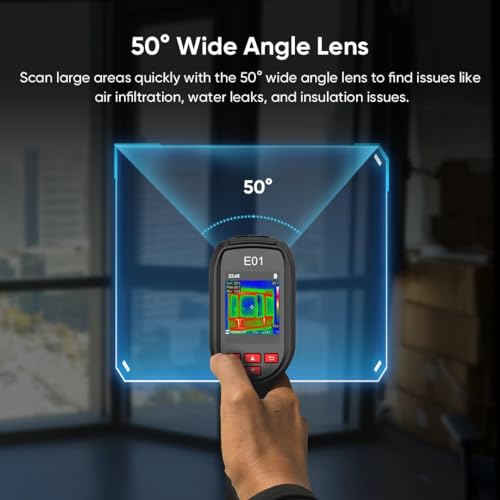COMPACT DESIGN WITH RICH FEATURES: E01 compact infrared thermography camera fits into any tool bag. 4G eMMC flash storage has room for >30,000 images, built-in Li-Ion rechargeable battery can support up to 8 hrs of continuous operation. And includes a laser pointer to help determine the location of problems.