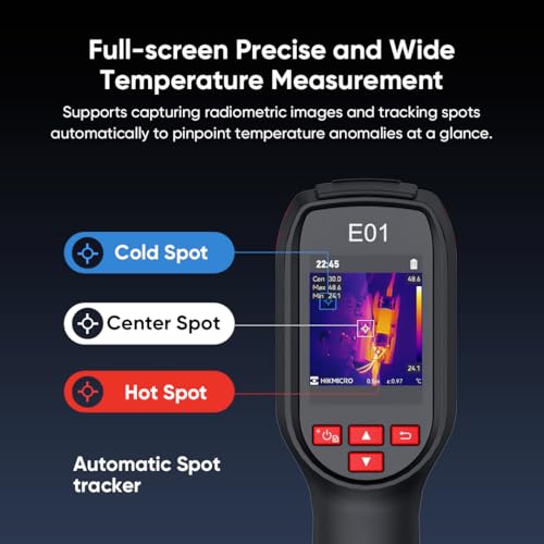 • IDEAL THERMAL PROBLEM FINDER: HIKMICRO E01 thermal camera is a good helper and a nice tool for homeowners or handymen to inspect thermal anomalies. It assists you in better finding the problems of House Missing Insulations, Air Leaks, Water Damage, HVAC thermal anomalies, and Automotive, Electrical, and Mechanical failures. Ideal thermal problem finder in daily life.