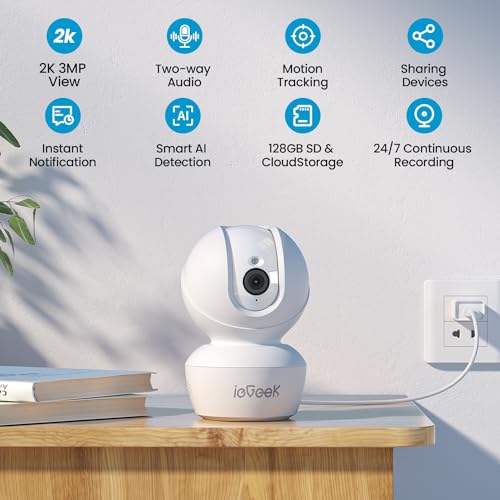 ieGeek 3MP 2K CCTV Camera for Home Indoor, WiFi Security Camera, 360° Pan/Tilt, Two-Way Audio, Motion Tracking, Human Detection, Night Vision, Alexa