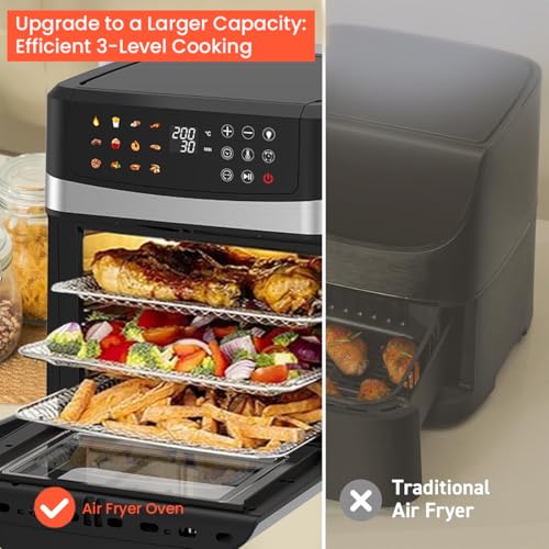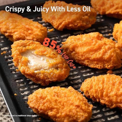 • EASY TO CLEAN – PFOA/BPA-free, non-stick air fryer basket and cooking tray are dishwasher-safe making clean up quick and easy.