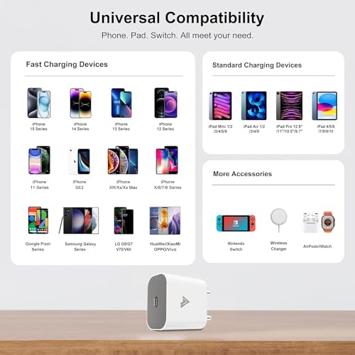 iPhone Charger Adapter 20W Original Type C for 17/17 Air/17 Pro/17 Pro Max iPhone 16/16 Plus/16 Pro/16 Pro Max 15/14/13/12/11 Series with PD 3.0 USB-C Fast Charging Adaptor BIS Certified