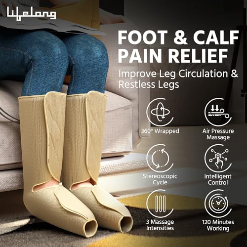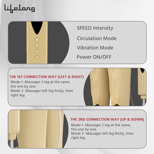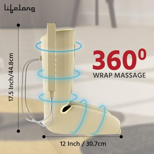 Lifelong LLM531 Rechargeable Air Pressure Massager – For Calves|Air Compression Massager|With Heat and Vibration|Foot, Calf, Leg and Arm Massager for Pain Relief|Multifunctional Air Pressure Massager (1 Year Warranty, Beige)