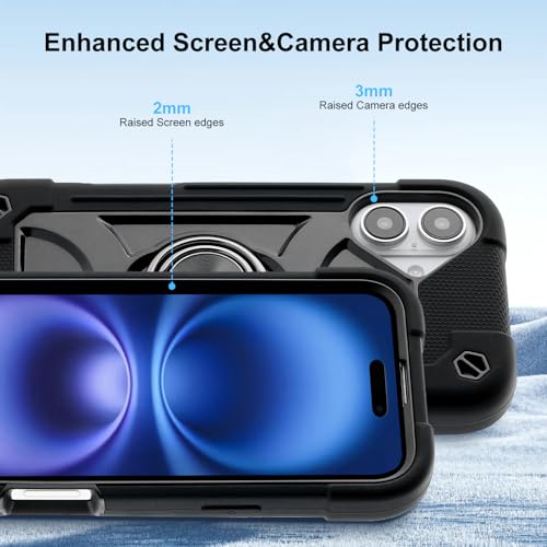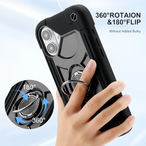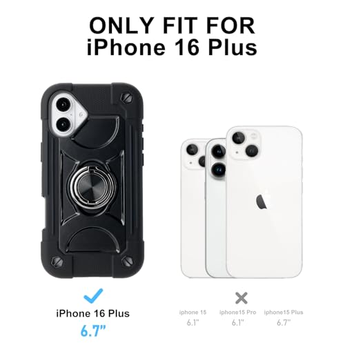 MARKILL Compatible with iPhone Case with Ring Stand, Military Grade Drop Protection Full Body Rugged Heavy Duty Protective Durable Cover iPhone. (Black, iPhone 16 Plus 6.7″)