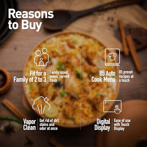 - Auto Cook 85 Menu: Choose from 85 preset recipes ranging from snacks to desserts to make every day meal a gourmet delight.