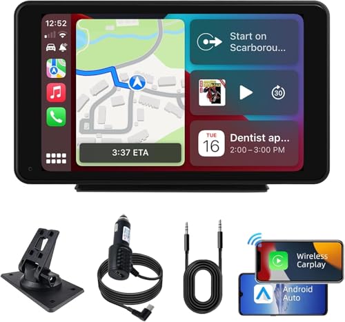 10 reviews for plimpton 2025 Upgraded Portable Carplay Android Auto Screen for Car, 7 Inch IPS Touch Screen for iOS Wireless Car Play Driveplay Multimedia Player with Voice Control, BT, Mirror Link for All Vehicle