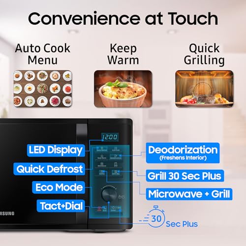 Samsung 23 L Grill Microwave Oven (MG23A3515AK/TL, Black, Various Auto Cook Programs, Keep Warm, Quick Defrost, LED Display, Ceramic Enamel Cavity, Wire Rack with 10 year warranty)