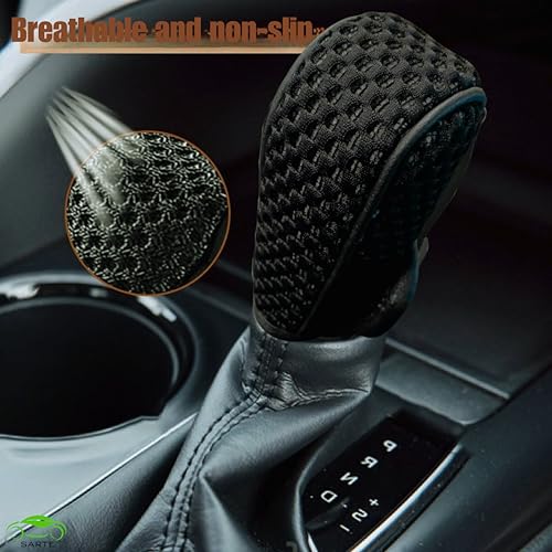 SARTE Gear Shift Knob Cover Anti-Slip, Breathable Cotton mesh Anti-Scratch Shift Handle Protector Premium Gear Knob Cover for All Cars Universal fit (Black)