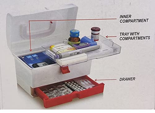 Other Special Features of the Product | Child-Safe Design – Rounded edges and sturdy build help keep contents safe from children., Durable Plastic Build – Made from high-quality, non-toxic, BPA-free plastic for long-lasting use and safety., First Aid Kit Storage Box Cosmetic Organizer with Detachable Trays and Carry Handle Extra Drawer & Handle Big Medical Box, Secure Locking System – Strong front latch keeps contents secure and prevents accidental opening., Spacious Multi-Compartment Design – Multiple internal compartments and a pull-out drawer for neat and organized medicine storage. |