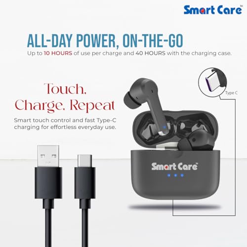 SMARTCARE SC-909 Digital Hearing Aid | 16-Channel WDRC | Bluetooth 5.2 | 38-Hour Battery Life, Button Control | Rechargeable TWS Hearing Device Mild to Moderately Severe Hearing Loss | Type-C Charging
