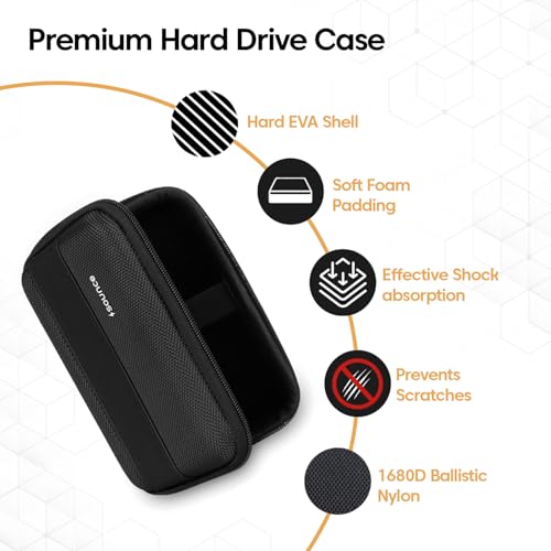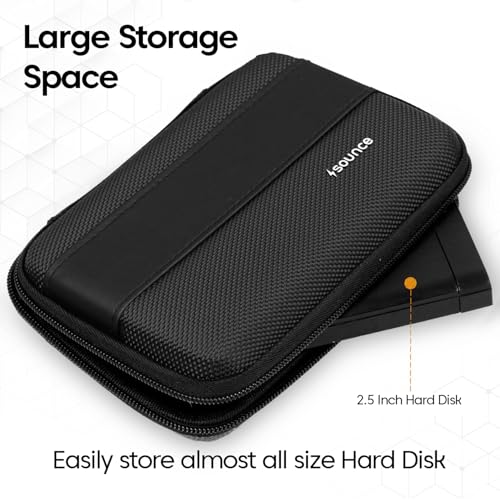Sounce Rugged Hard Drive Case for 2.5-inch, Hard Disk Case, EVA Disk Pouch, External Hard Disk Cover, Portable Storage Shell for Gadget Hard Disk USB Cable Mobile Charger Earphone, Waterproof (Black)