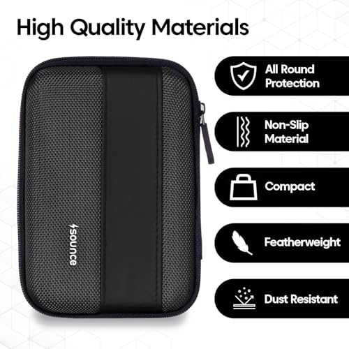 The Sounce Hard Drive case combines high quality and durability with a sleek design, constructed from premium hard EVA materials and featuring a robust zipper for shock resistance. This versatile case effectively protects a variety of items, including headphones, hard disks, USB cables, mobile chargers, and earphones, while being stylish and easy to clean. Its sturdy zippered closure ensures quick access, while a soft felt lining shields your HDD from dust. With water-resistant and shockproof capabilities, this case is ideal for on-the-go protection. The slim design allows it to effortlessly fit into any backpack, briefcase, or messenger bag, maintaining its shape thanks to high-hardness materials and an anti-press feature. For added organization, the rugged shell case includes an elastic band to secure your HDD and a separate mesh pocket for storing USB cables, flash drives, and chargers, keeping your accessories neatly organized and accessible. Compact and lightweight, measuring approximately 8cm x 8cm x 4cm (3.1″ x 3.1″ x 1.6″), this mini square-shaped case is perfect for pockets, purses, or handbags, making it an essential accessory for anyone on the move.