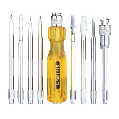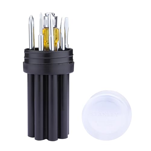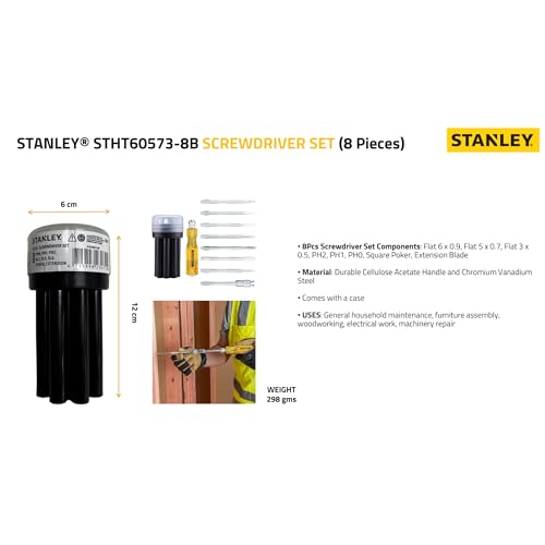 STANLEY STHT60573-8B 8 Pcs Screwdriver Set With 3 Phillips & 3 Flat Tips, 1 Square Poker & 1 Extension Blade- Multi-Purpose Tool Screwdriver Set, Ideal for Home, DIY & Professional Fastening Purposes